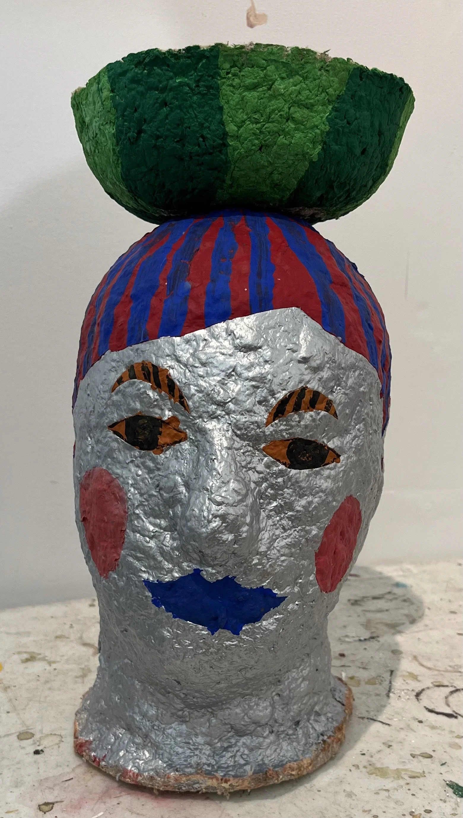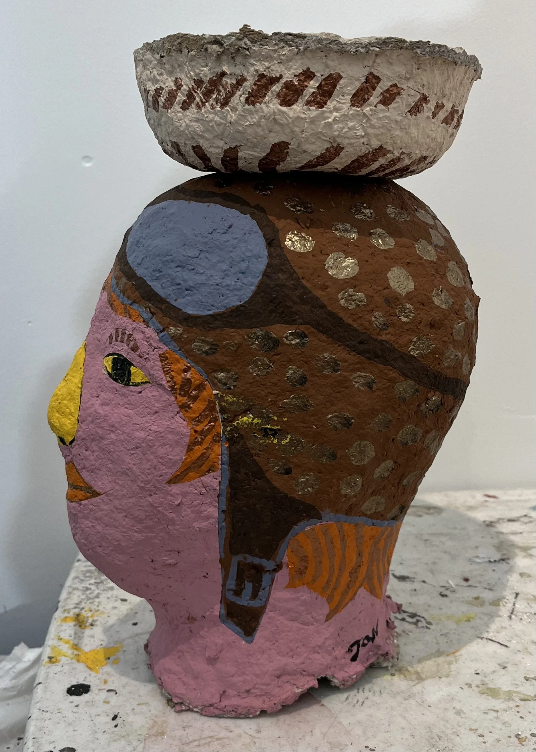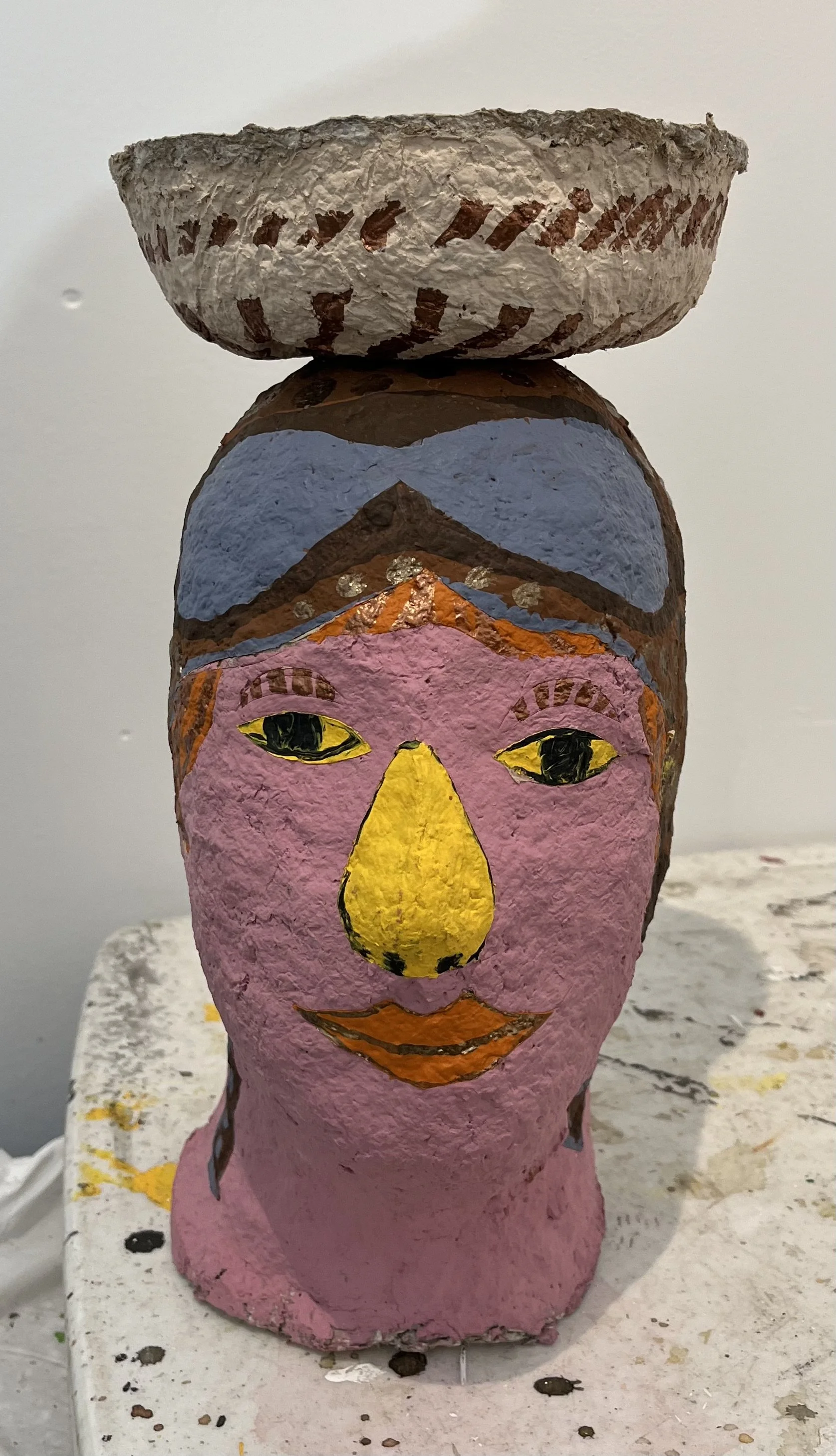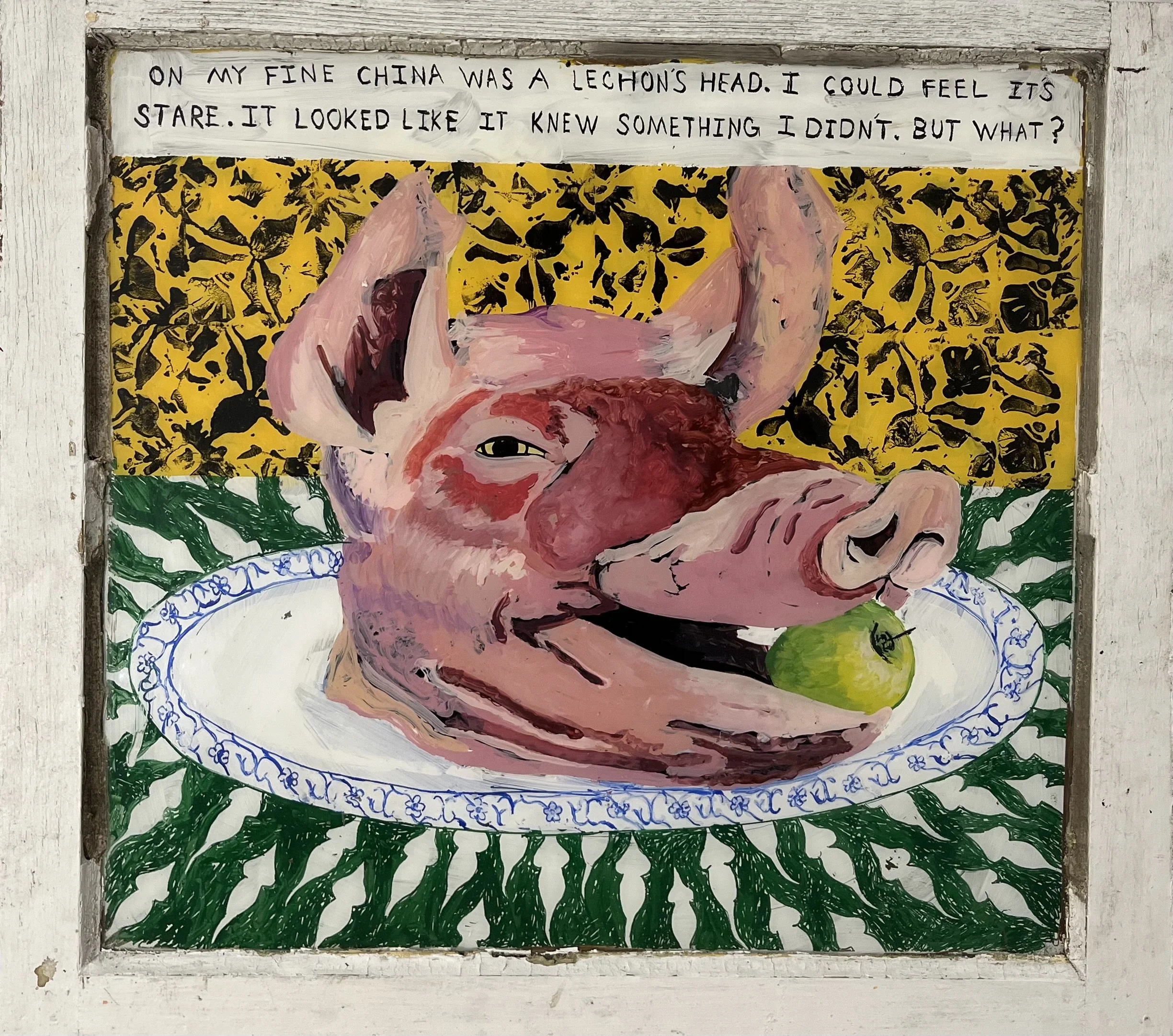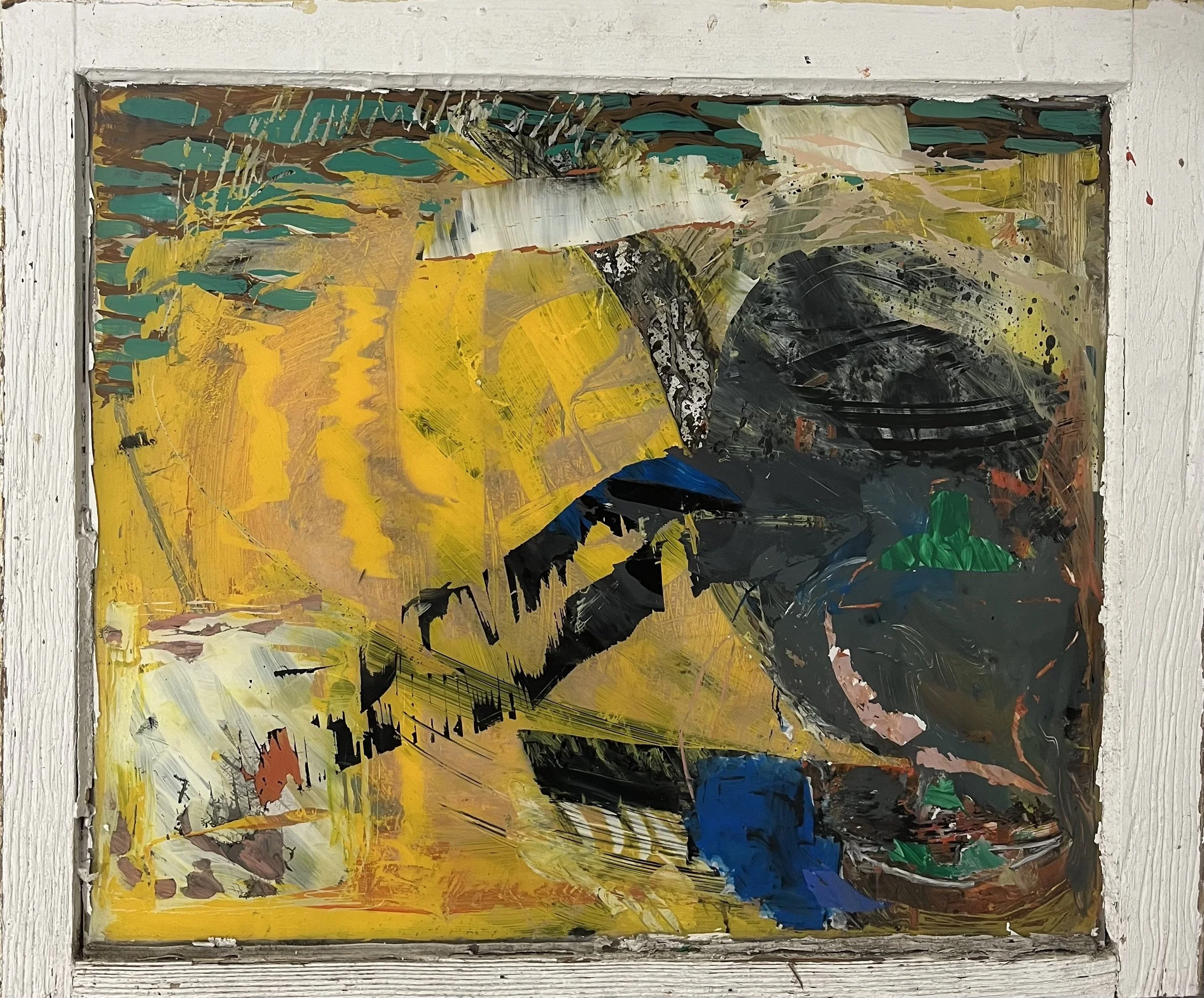 abstract still life.(potted plant, skull and jack-o-lantern)