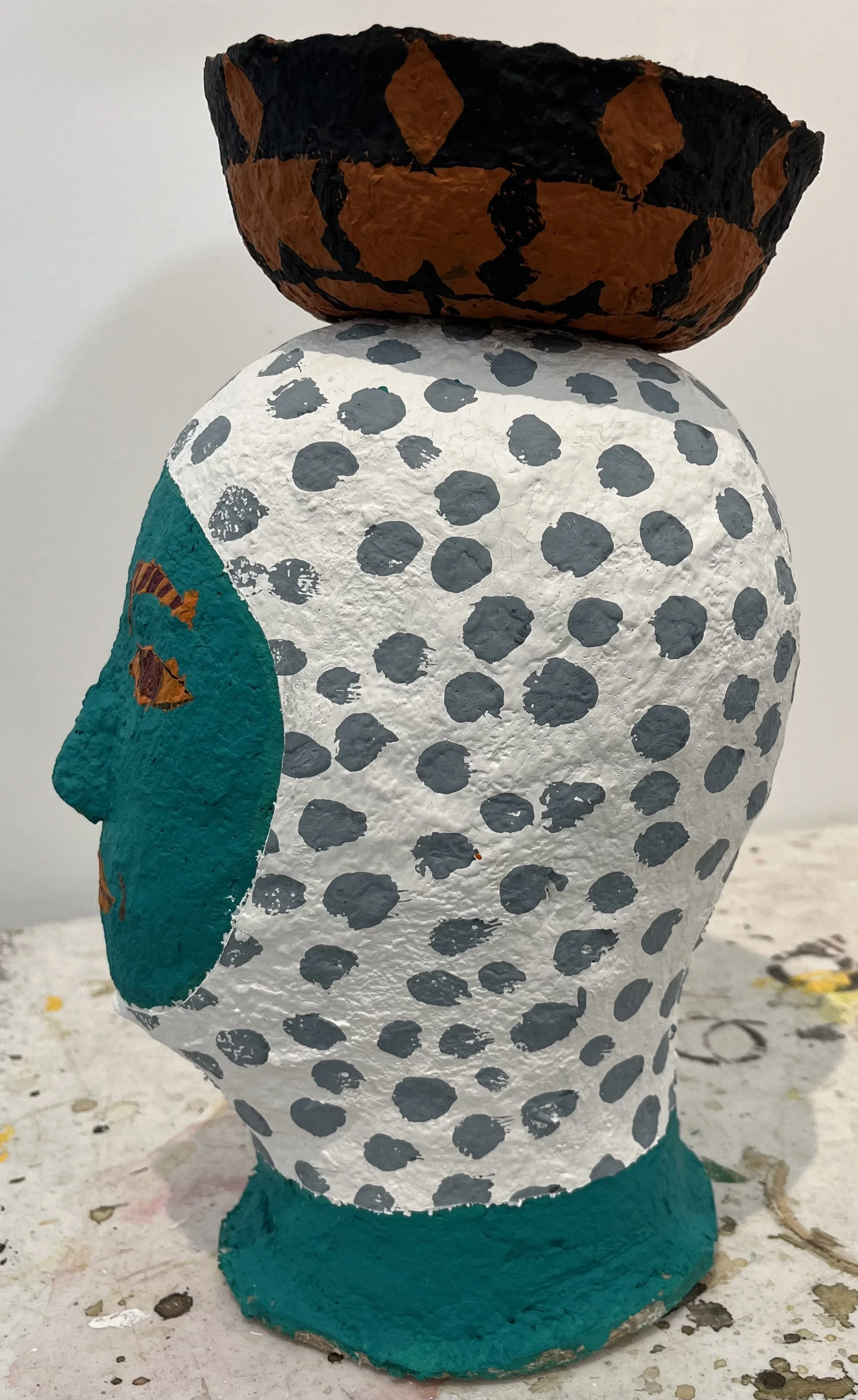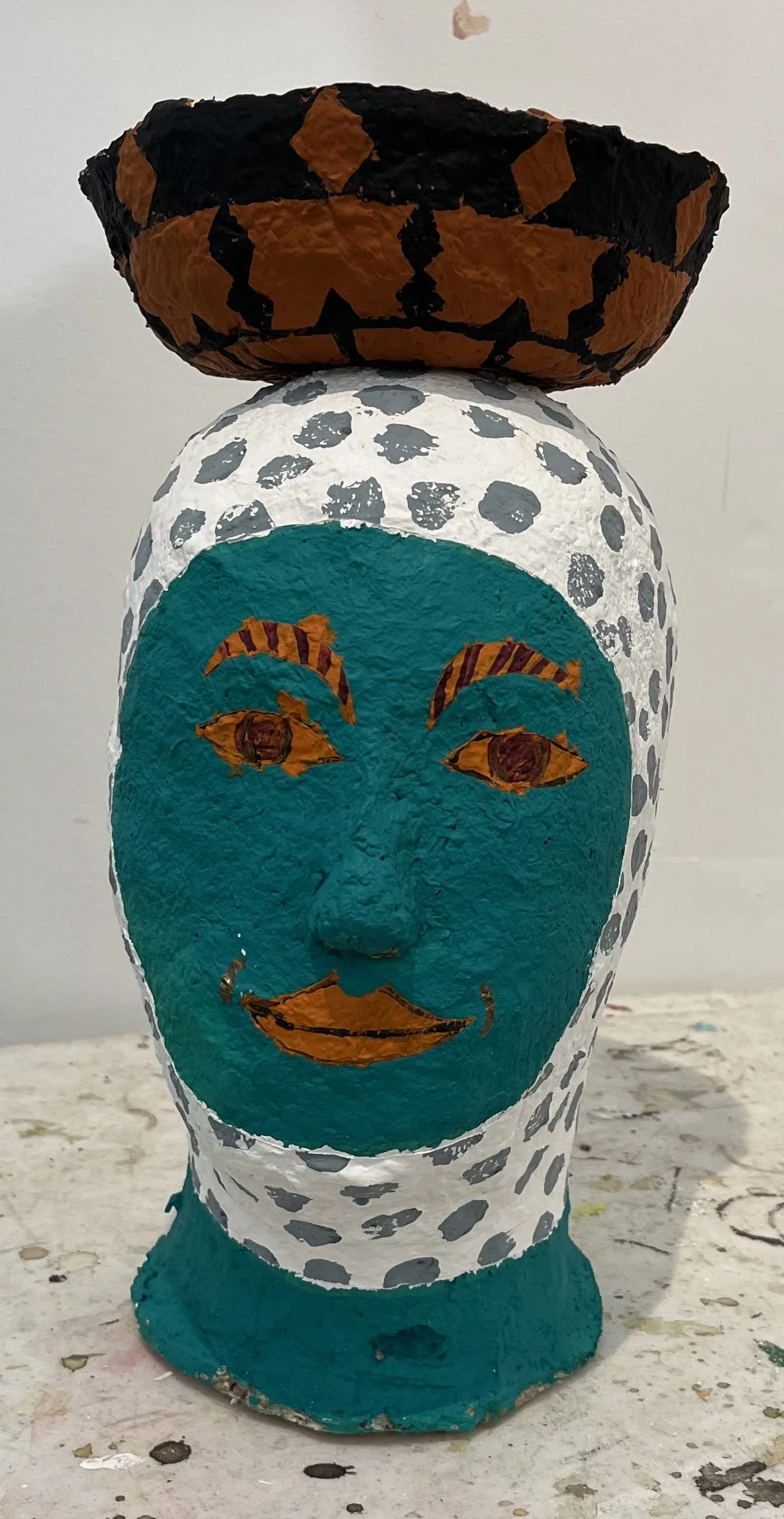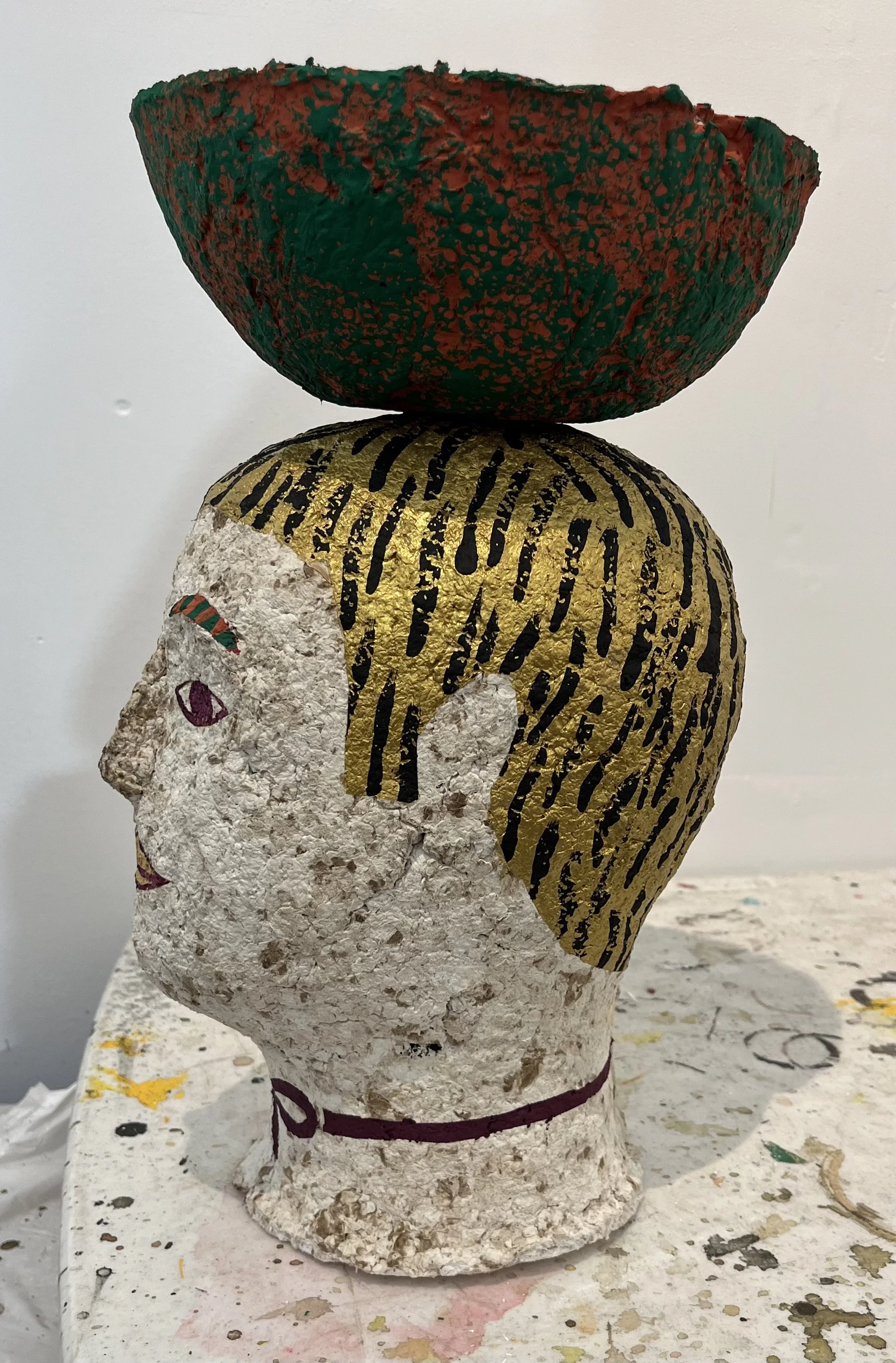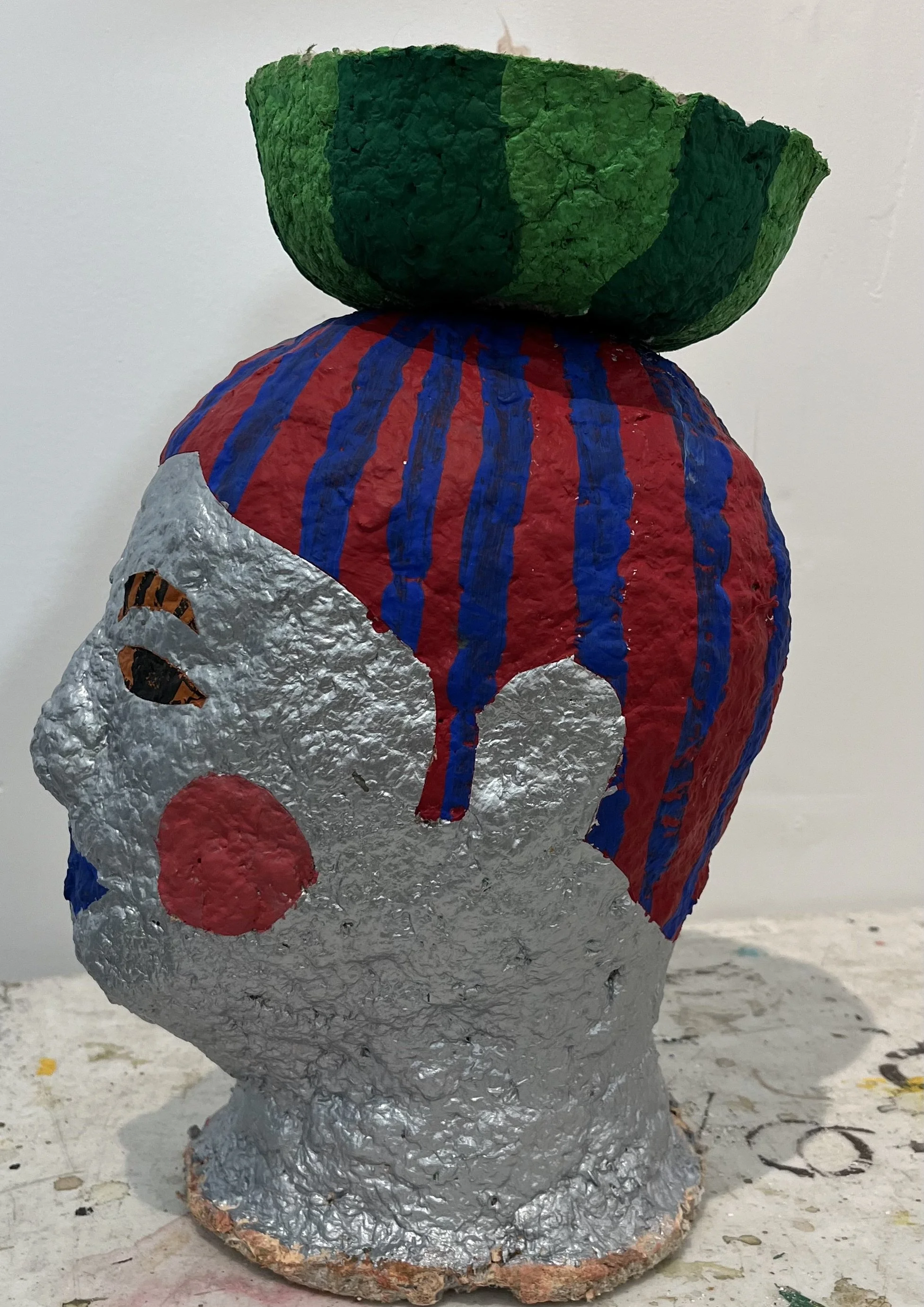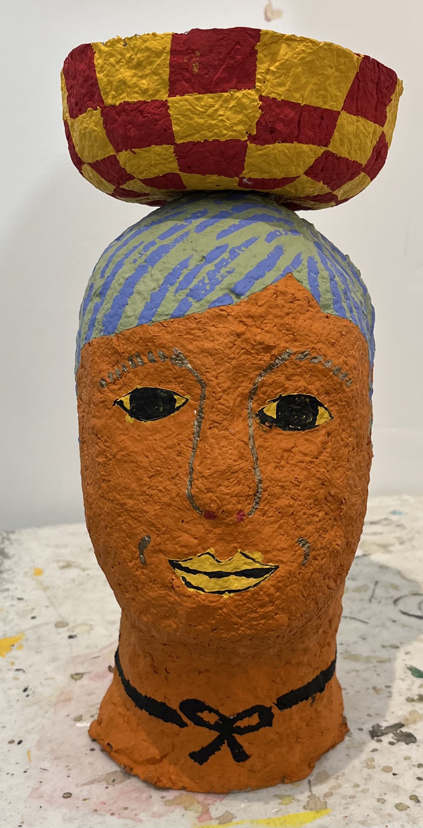 abstract still life.(potted plant, skull and jack-o-lantern)