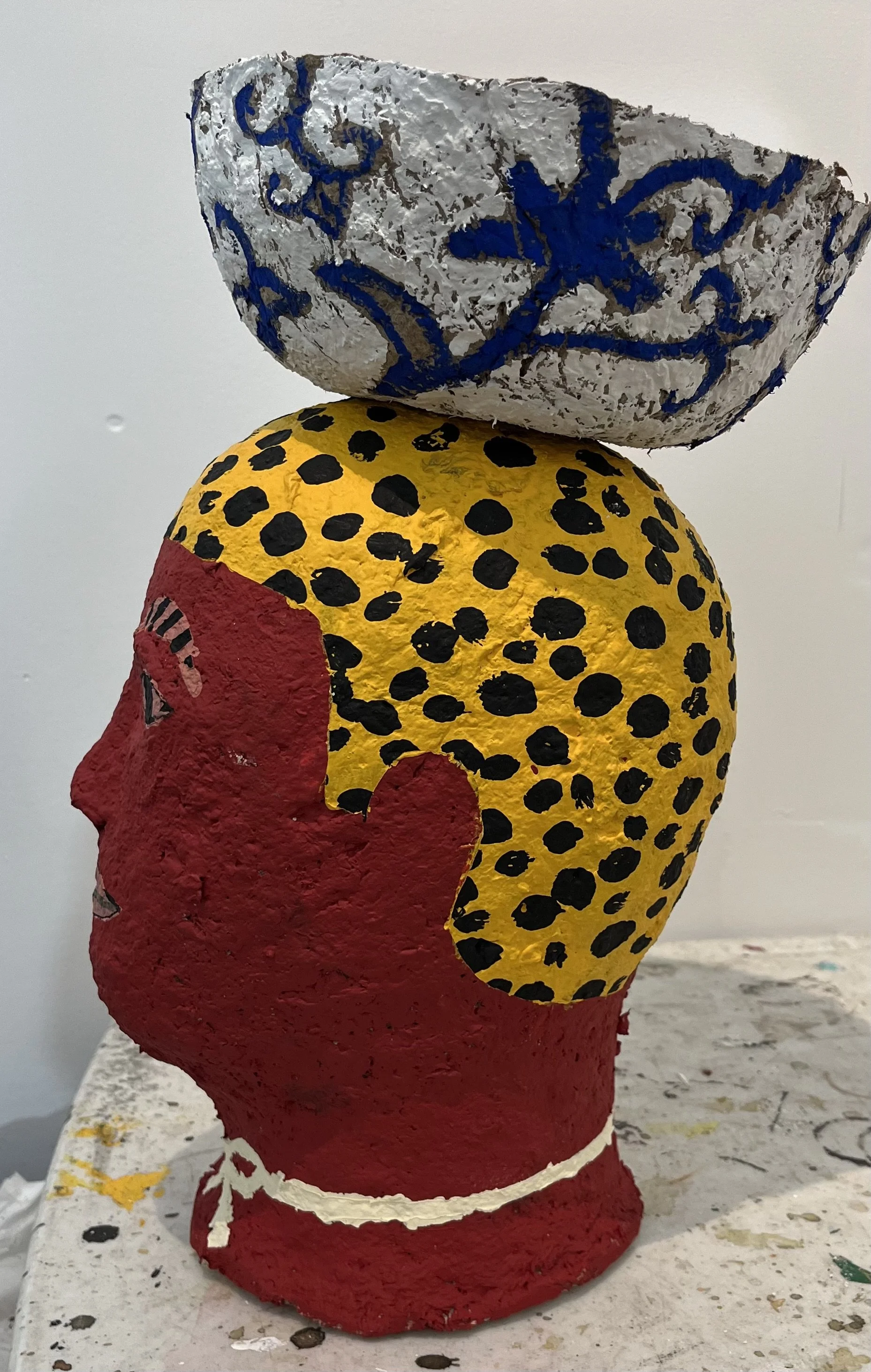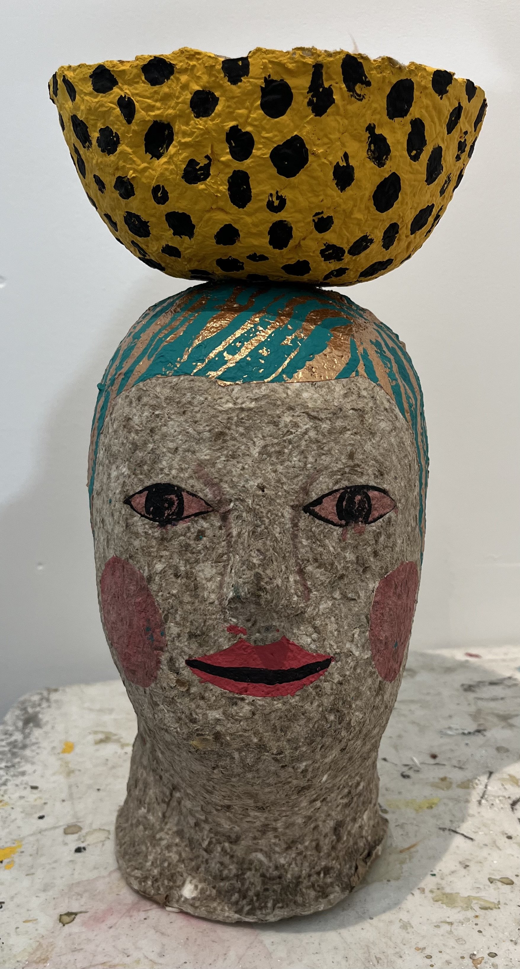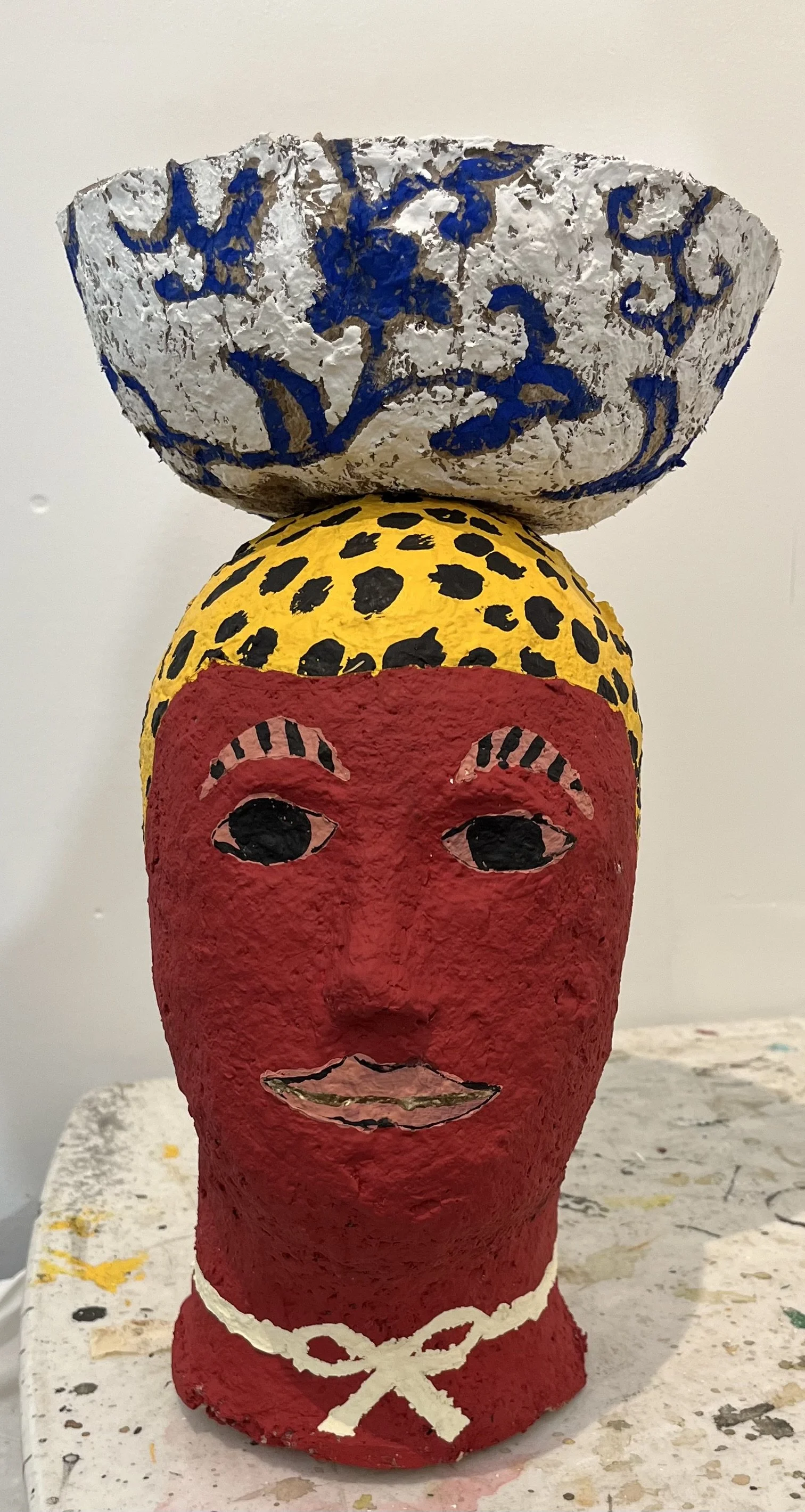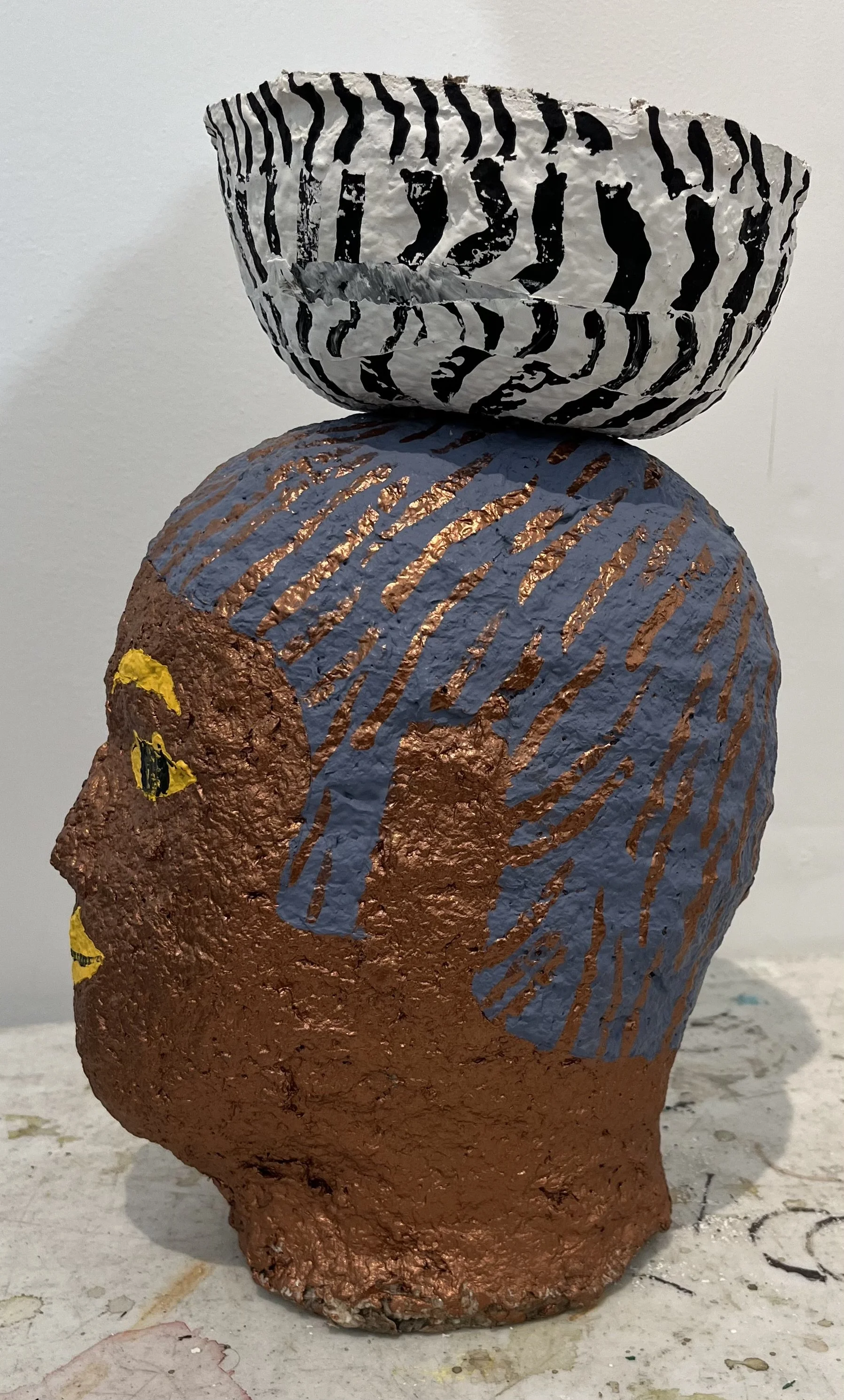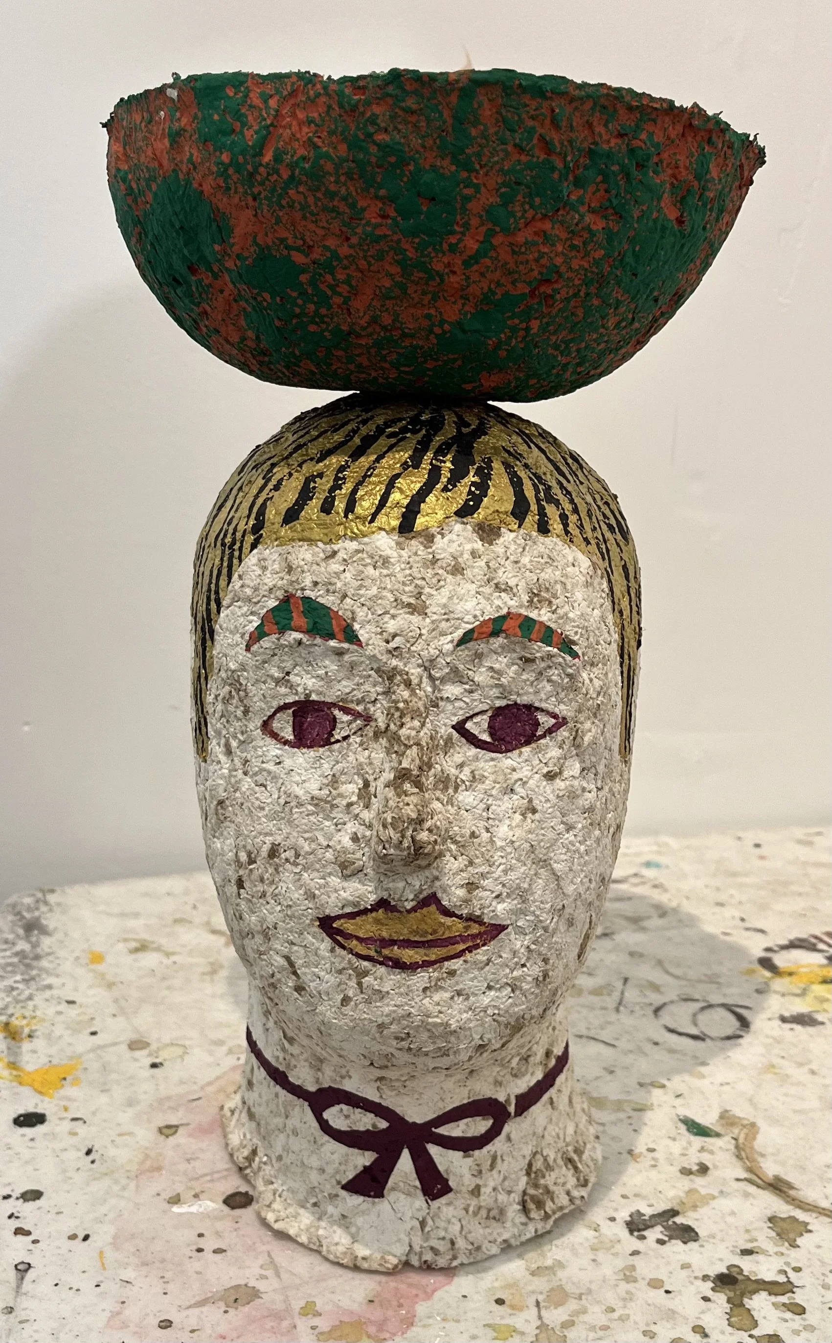 abstract still life.(potted plant, skull and jack-o-lantern)