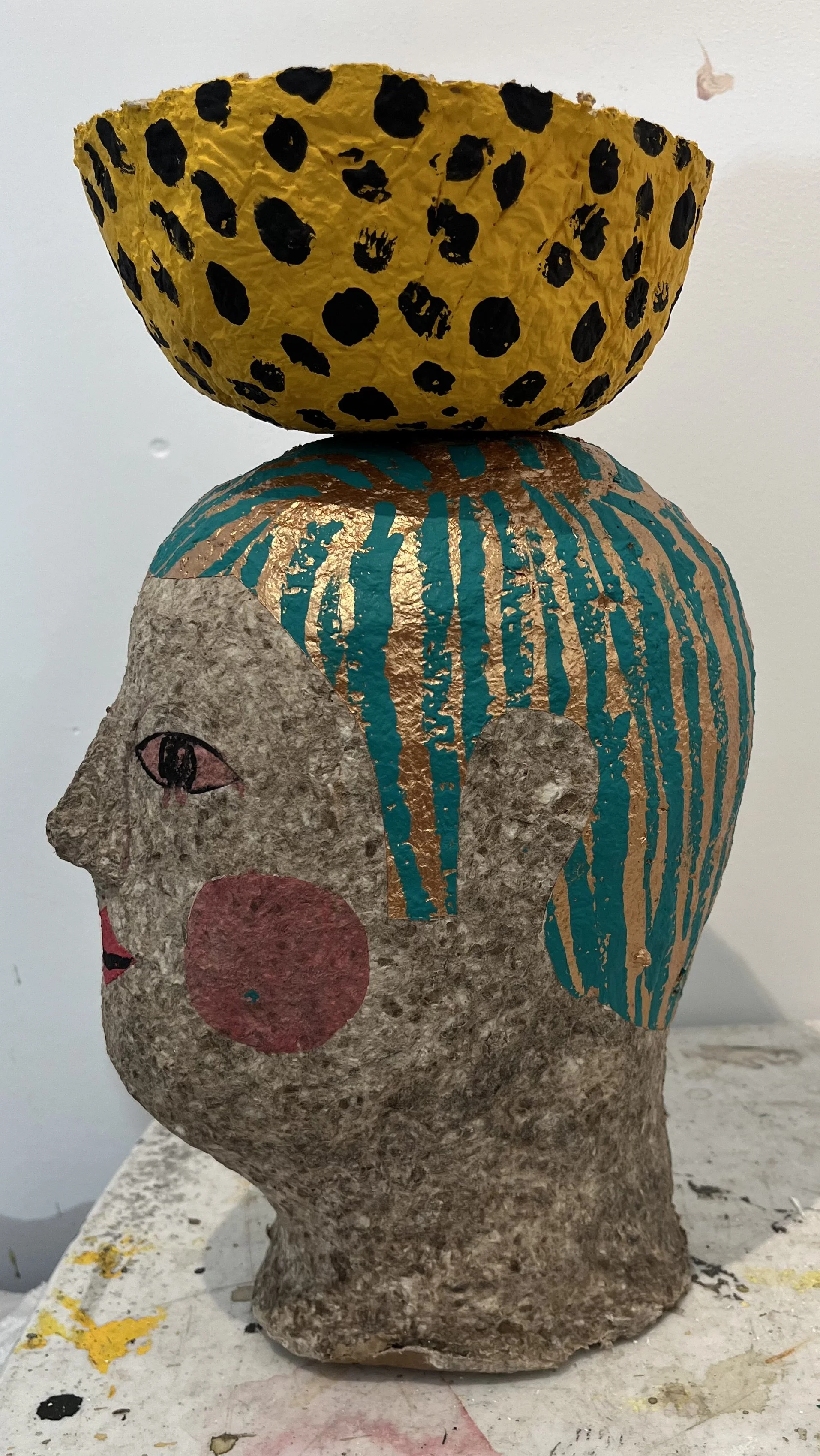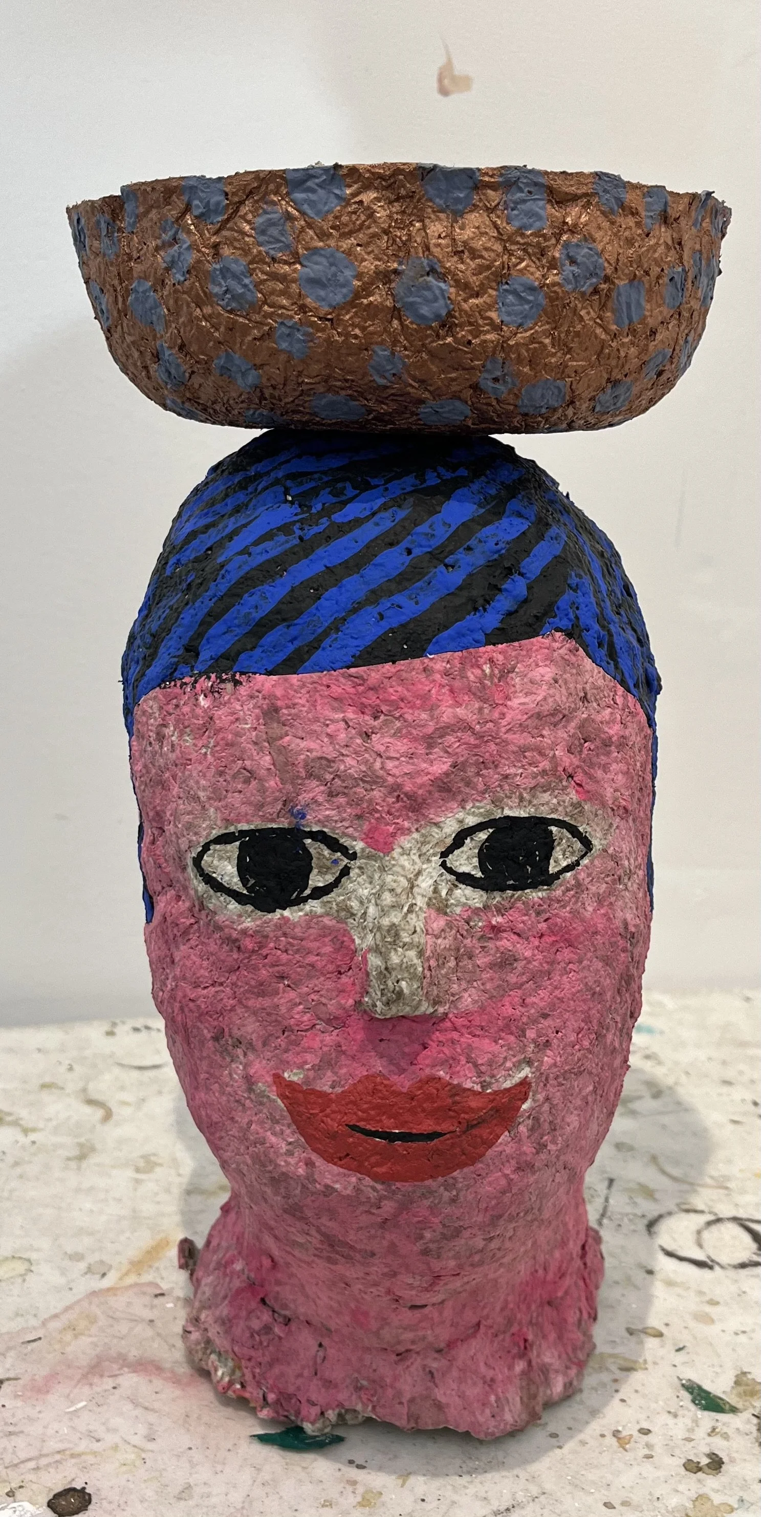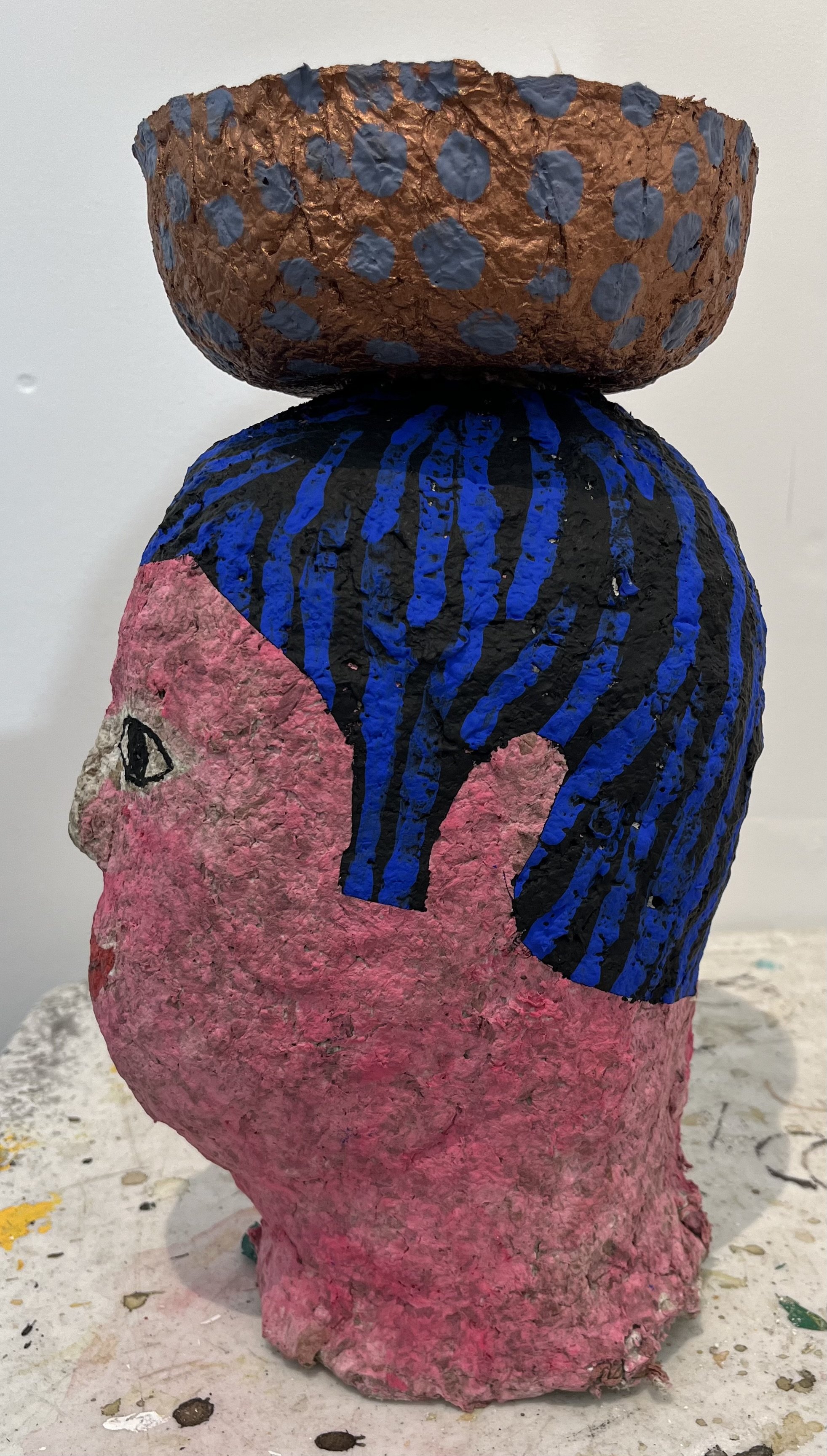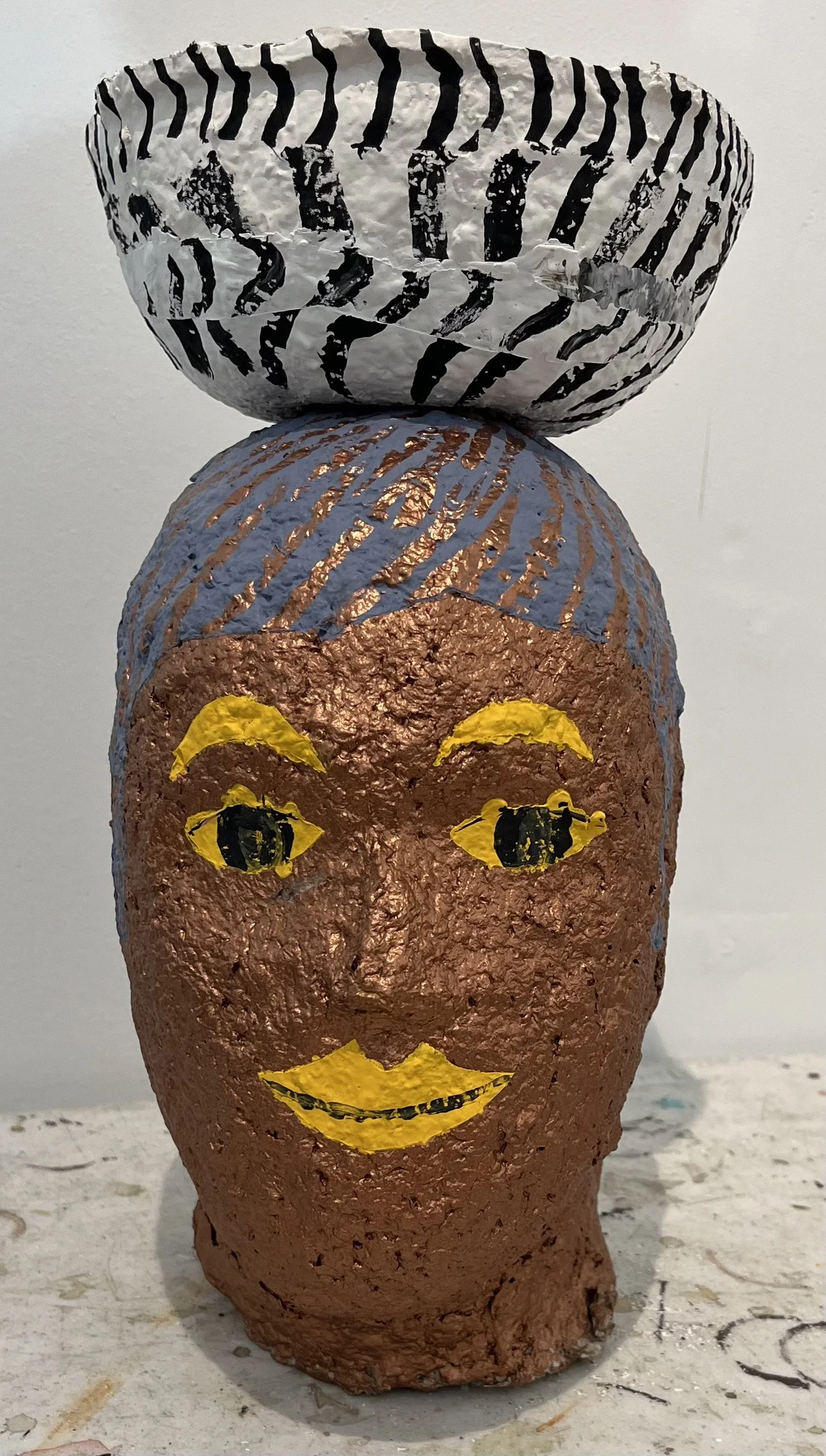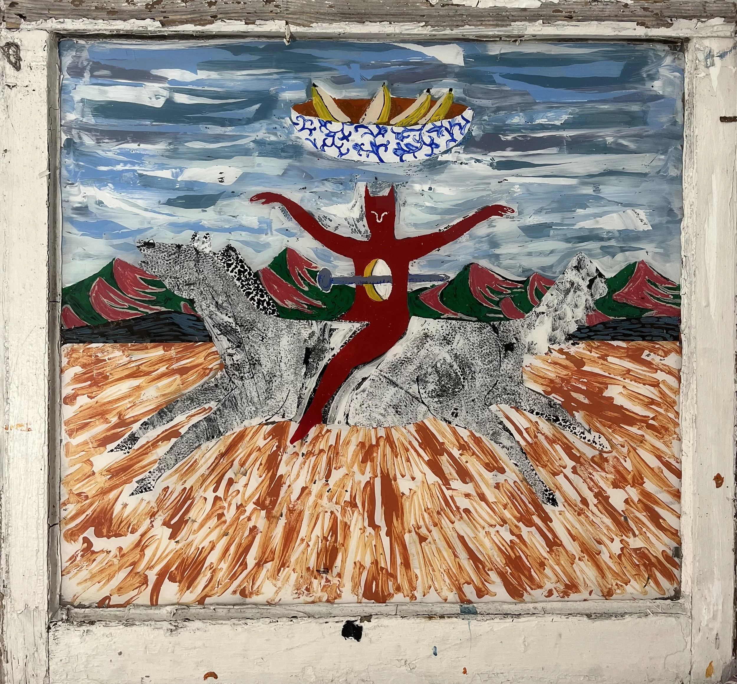 abstract still life.(potted plant, skull and jack-o-lantern)
